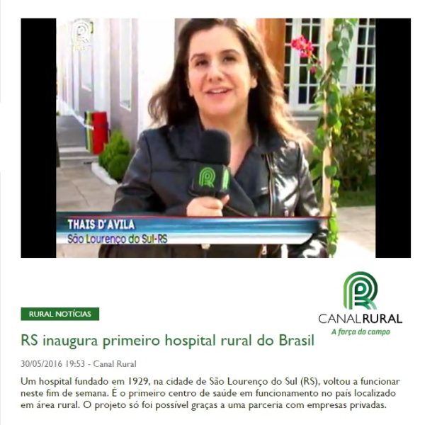 30/05/2016 – Canal Rural: RS inaugura primeiro hospital rural do Brasil
