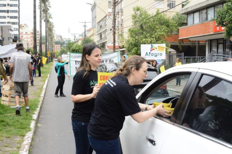 Meia tonelada de bananas foi distribuída nesta sexta-feira (11) por fiscais estaduais agropecuários em frente à Secretaria da Agricultura, Pecuária e Irrigação do RS. A presidente da Afagro, Angela Antunes explica que a intenção foi “simbolizar a grande banana que o governador tem dado ao funcionalismo há oito meses, além de oferecer à população um […]