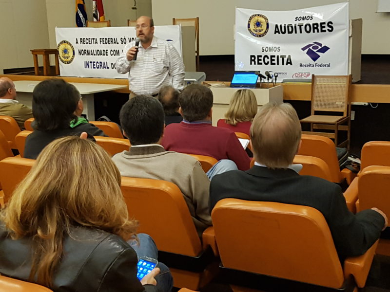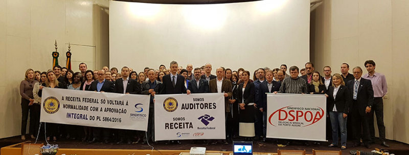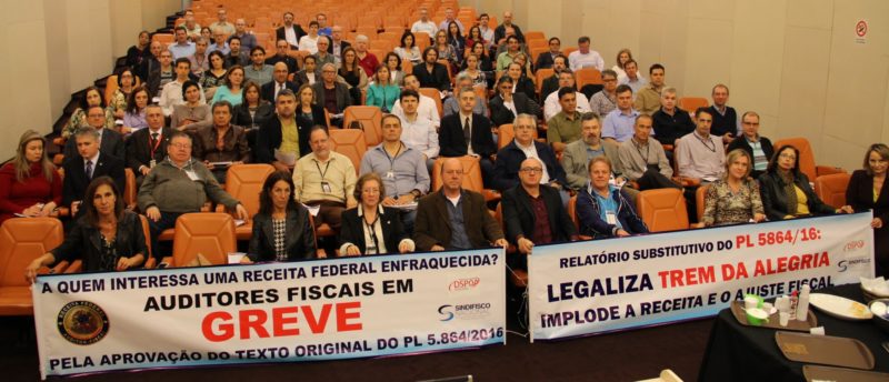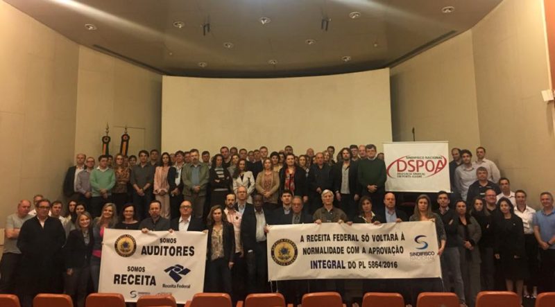O primeiro dia de greve dos Auditores Fiscais da Receita Federal foi marcado por intensa mobilização em Porto Alegre. Mais de 100 Auditores estiveram presentes no auditório do 11° do Chocolatão. Seguindo a orientação definida em Assembleia, os Auditores assinaram o ponto como greve. Os servidores estão indignados com o conteúdo do relatório apresentado pelo […]