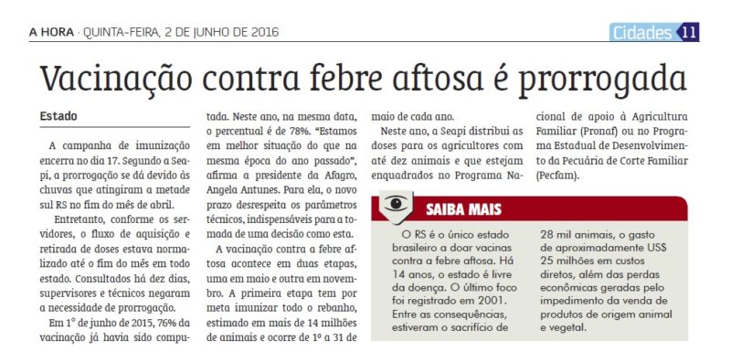 02/06/2016 – A Hora: Vacinação contra febre aftosa é prorrogada