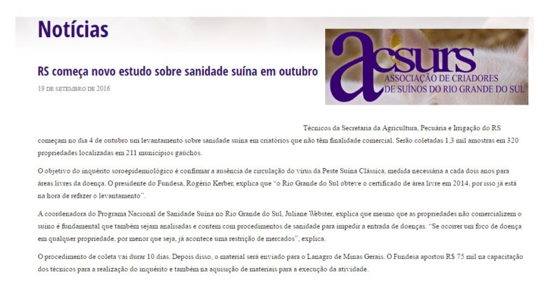 19/09/2016 – ACSURS: RS começa novo estudo sobre sanidade suína em outubro