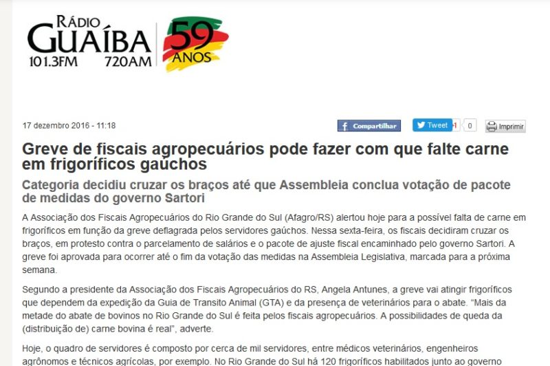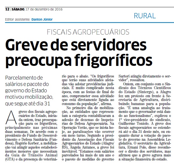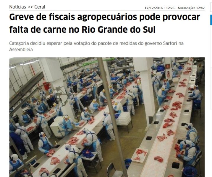 17/12/2016 – CP: Greve de fiscais agropecuários pode provocar falta de carne no Rio Grande do Sul