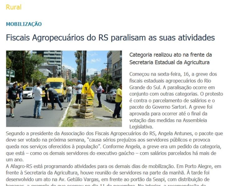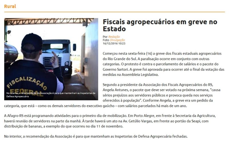 17/12/2016 – RCC: Fiscais Agropecuários do RS paralisam as suas atividades