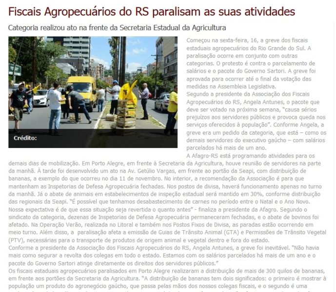 17/12/2016 – Jornal A Plateia : Fiscais Agropecuários do RS paralisam as suas atividades