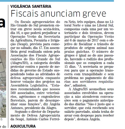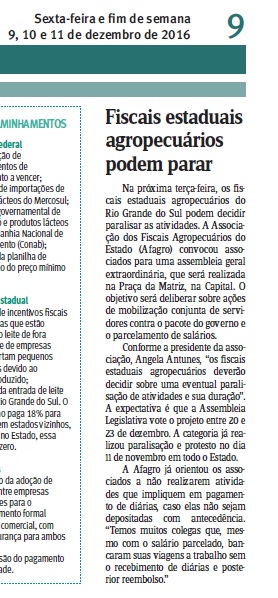13/12/2016 – JC: Fiscais estaduais agropecuários do RS decidem entrar em greve