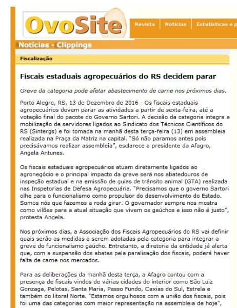 13/12/2016 – OvoSite: Fiscais estaduais agropecuários do RS decidem parar