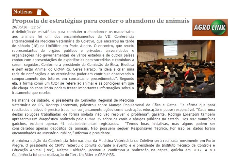 20/06/2016 – Agrolink: Proposta de estratégias para conter o abandono de animais