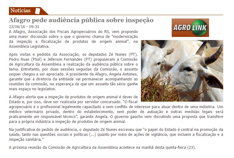 23/06/2016 – Agrolink: Afagro pede audiência pública sobre inspeção