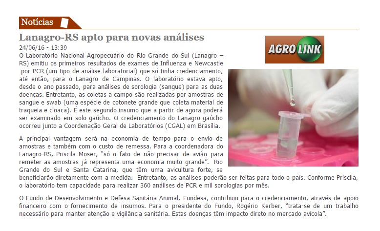 24/06/2016 – Agrolink: Lanagro-RS apto para novas análises