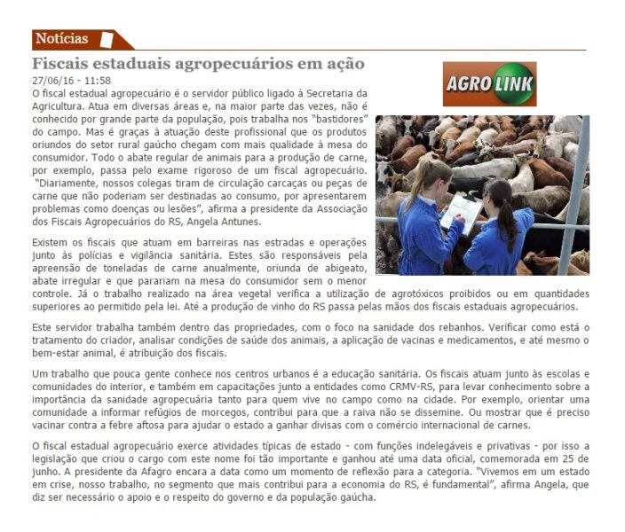 27/06/2016 – Agrolink: Fiscais estaduais agropecuários em ação