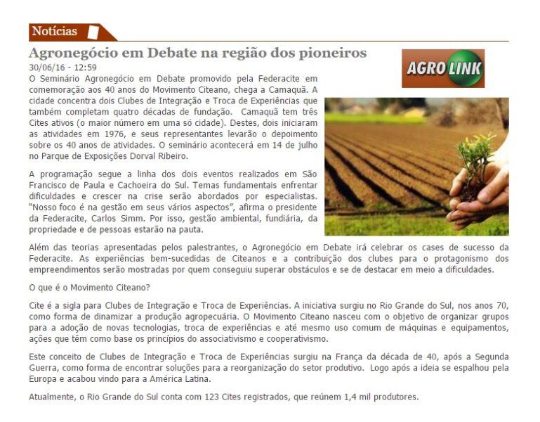 30/06/2016 – Agrolink: Agronegócio em Debate na região dos pioneiros