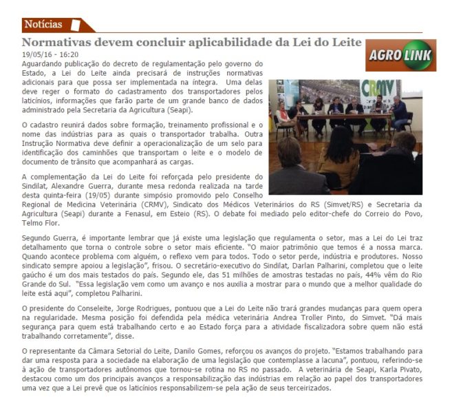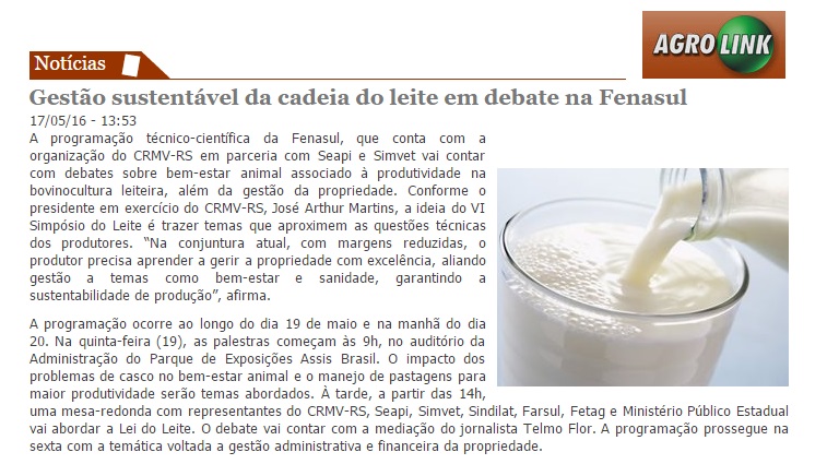 17/05/2016 – Agrolink: Gestão sustentável da cadeia do leite em debate na Fenasul