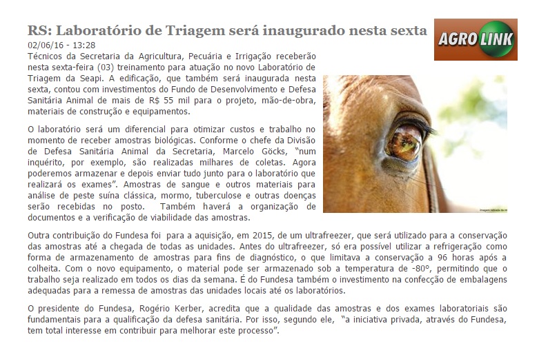 02/06/2016 – Agrolink: Laboratório de Triagem será inaugurado nesta sexta