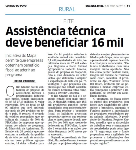 02/05/2016 – CP: Assistência técnica deve beneficiar 16 mil