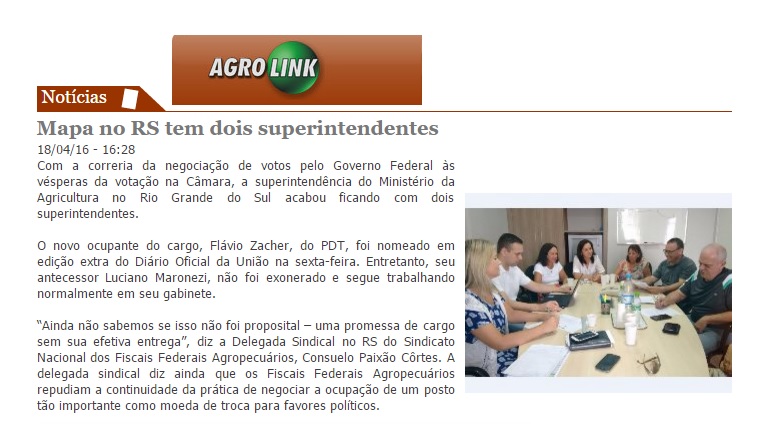 18/04/2016 – Agrolink: Mapa no RS tem dois superintendentes