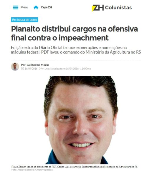 16/04/2016 – ZH: Planalto distribui cargos na ofensiva final contra o impeachment
