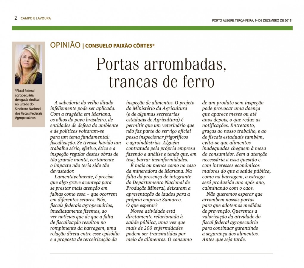 01/12/2015 – ZH: Campo e Lavoura – ARTIGO – Portas arrombadas, trancas de ferro