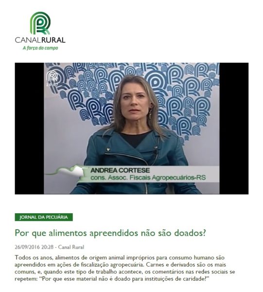 26/09/2016 – Canal Rural: Por que alimentos apreendidos não são doados?