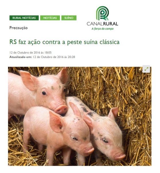 12/10/2016 – Canal Rural: RS faz ação contra a peste suína clássica