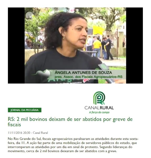 11/11/2016 – Canal Rural: 2 mil bovinos deixam de ser abatidos por greve de fiscais