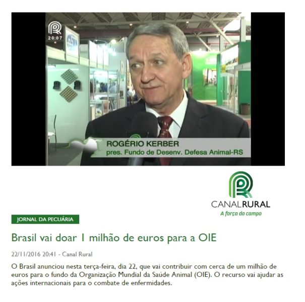 22/11/2016 – Canal Rural: Brasil vai doar 1 milhão de euros para a OIE
