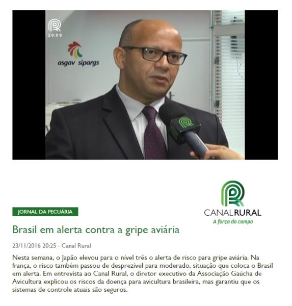 23/11/2016 – Canal Rural: Brasil em alerta contra a gripe aviária