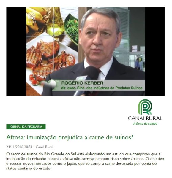 24/11/2016 – Canal Rural: Aftosa: imunização prejudica a carne de suínos?