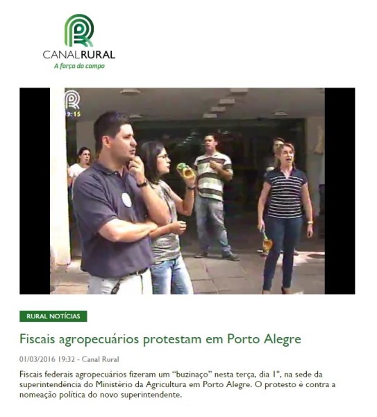 01/03/2016 – Canal Rural: Fiscais agropecuários protestam em Porto Alegre