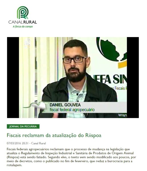 07/03/2016 – Canal Rural: Fiscais reclamam da atualização do Riispoa