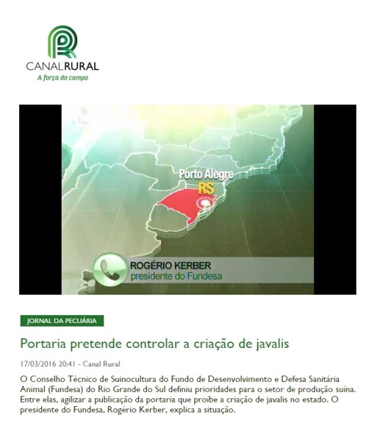 17/03/2016 – Canal Rural: Portaria pretende controlar a criação de javalis
