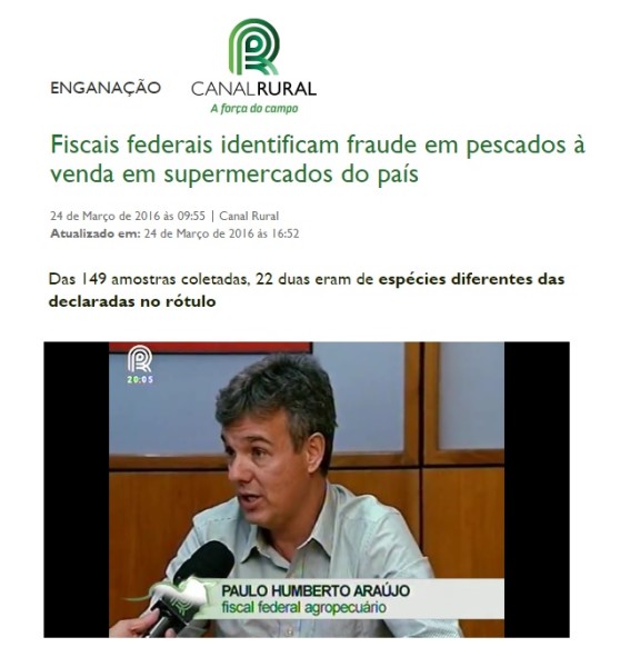 24/03/2016 – Canal Rural: Fiscais federais identificam fraude em pescados à venda em supermercados do país
