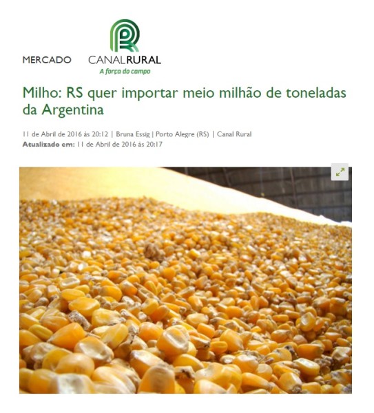 11/04/2016 – Canal Rural: Milho – RS quer importar meio milhão de toneladas da Argentina