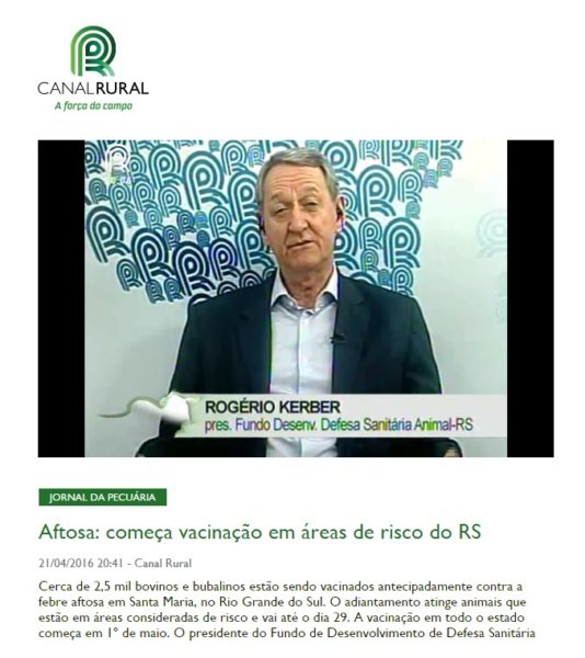21/04/2016 – Canal Rural: Aftosa: começa vacinação em áreas de risco do RS