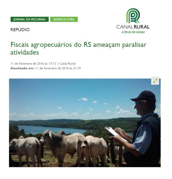 11/02/2016 – Canal Rural: Fiscais agropecuários do RS ameaçam paralisar atividades