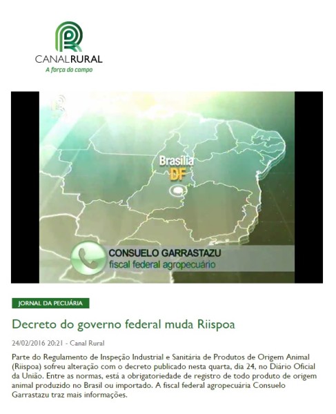 24/02/2016 – Canal Rural: Decreto do governo federal muda Riispoa