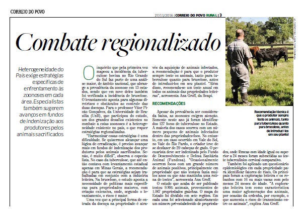 CORREIO DO POVO | CORREIO DO POVO RURAL | PÁGINAS 1, 2 E 3 Heterogeneidade do País exige estratégias específicas de enfrentamento às zoonoses em cada área. Especialistas também sugerem avanços em fundos de indenização aos produtores pelos animais sacrificados O inquérito que pela primeira vez mapeou a incidência da tuberculose bovina no Rio Grande […]