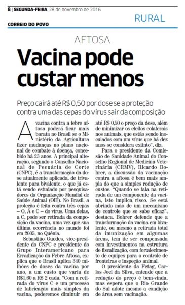 24/11/2016 – CP: Risco de aftosa é desprezível
