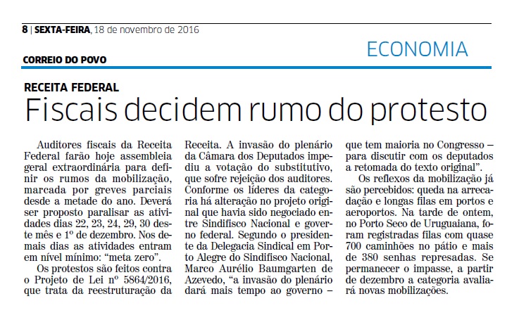 18/11/2016 – CP: Fiscais decidem rumo do protesto