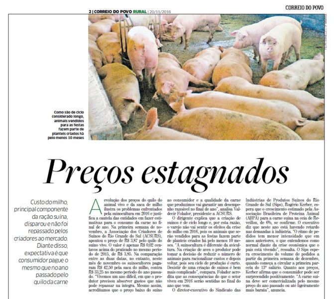 CORREIO DO POVO | CORREIO DO POVO RURAL | PÁGINA 2 Custo do milho, principal componente da ração suína, disparou e nãofoi repassado pelos criadores ao mercado. Diante disso, expectativa é que consumidor pague o mesmo que noa no passado pelo quilo da carne A evolução dos preços do quilo do animal vivo e da […]