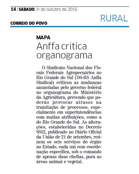 01/10/2016 – CP: Anffa critica organograma
