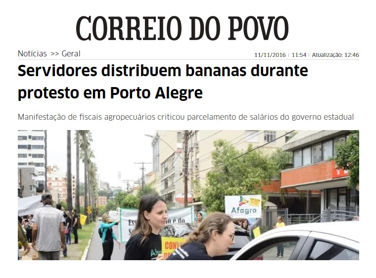 11/11/2016 – CP: Servidores distribuem bananas durante protesto em Porto Alegre