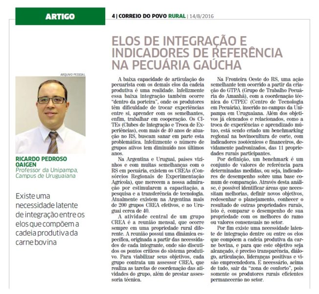 14/08/2016 – CP: Elos de integração e indicadores de referência na pecuária gaúcha