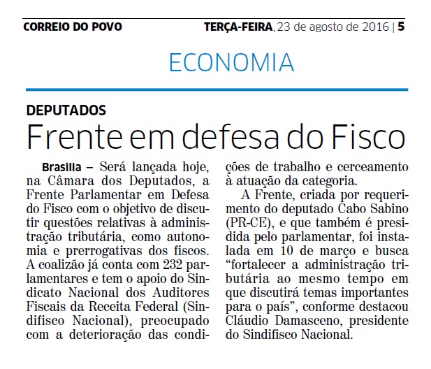 23/08/2016 – CP: Frente em defesa do Fisco