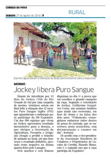 27/08/2016 – CP: Jockey libera Puro Sangue
