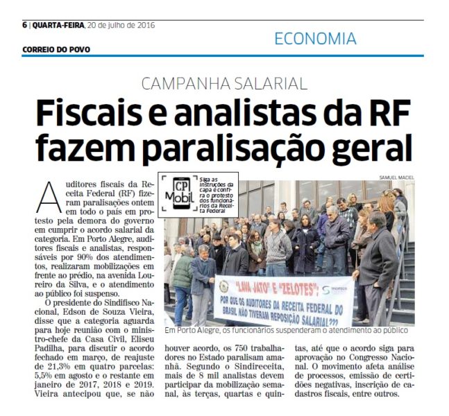 20/07/2016 – CP: Fiscais e analistas da RF fazem paralisação geral