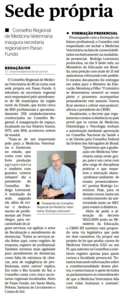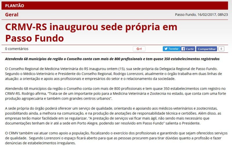 16/02/2017 – Diário da Manhã: CRMV-RS inaugurou sede própria em Passo Fundo