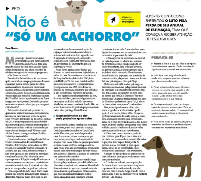 JORNAL ZERO HORA | VIDA | PETS | PÁGINA 5 Meu amigo Claudio foi uma das primeiras pessoas a saber da morte da minha cachorra. Ele dava aula naquela manhã de sexta-feira quando liguei. Antes de explicar ao seu aluno o motivo do telefonema urgente, ele conta que perguntou: – Você tem cachorro? Esse detalhe […]