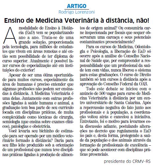 02/03/2017 – CP: Ensino de Medicina Veterinária à distância, não!