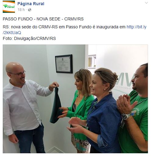 FACEBOOK | PÁGINA RURAL PASSO FUNDO – NOVA SEDE – CRMV/RS RS: nova sede do CRMV-RS em Passo Fundo é inaugurada Clique aqui para ver a matéria na página.