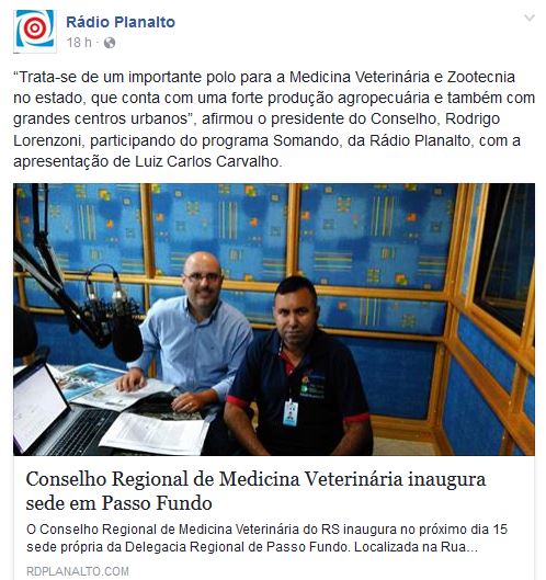 14/02/2017 – Rádio Planalto: CRMV-RS inaugura sede própria em Passo Fundo